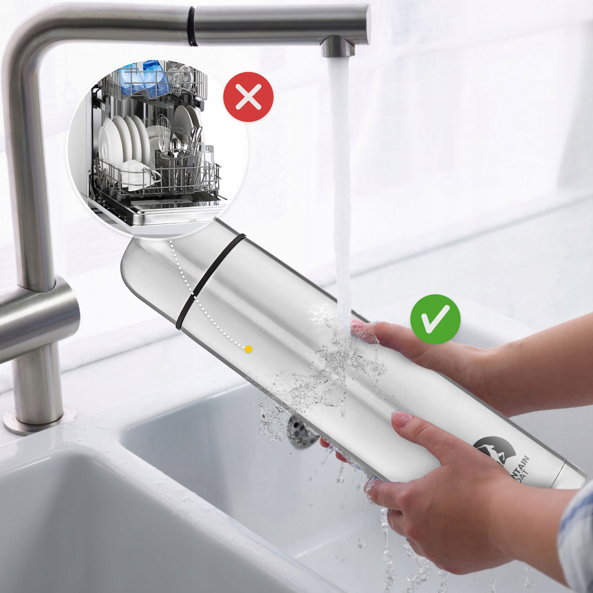- Легкість у догляді: Термос призначений для ручного миття. Гладка поверхня легко очищається, а силіконові елементи можна знімати для ретельного миття.