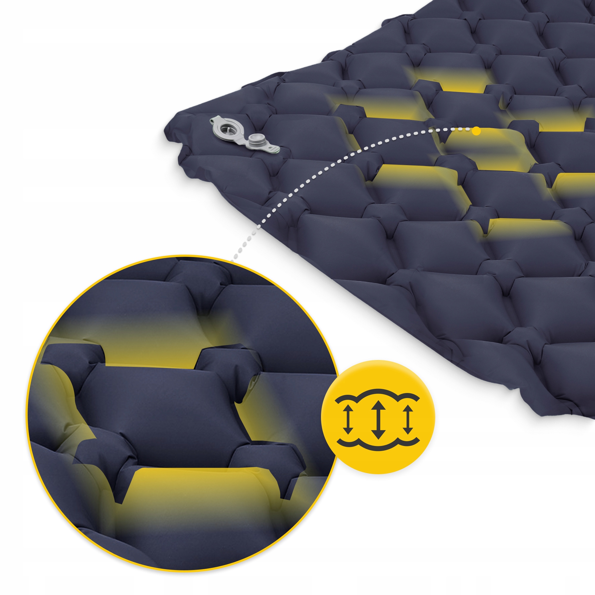 - Спеціальна структура з окремими ромбоподібними повітряними камерами ідеально повторює контури тіла.